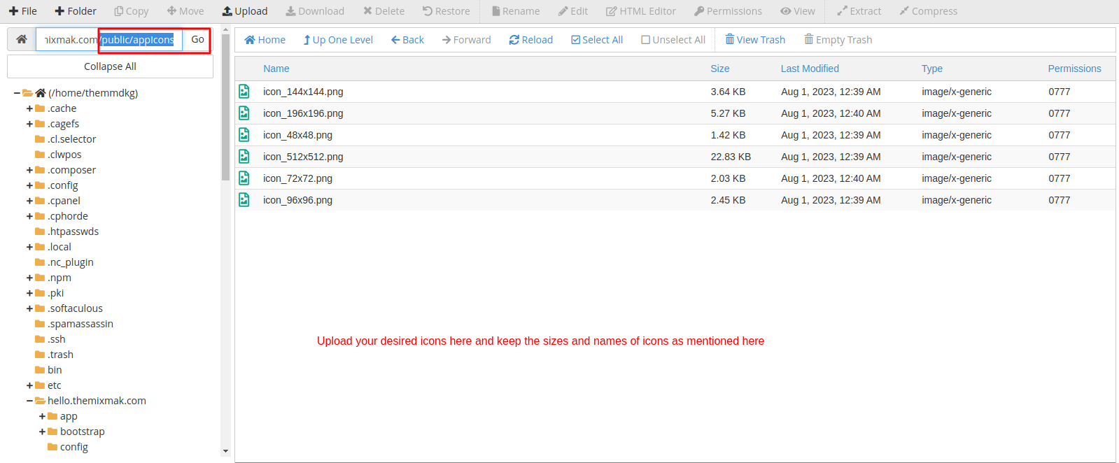 2. To change the app icons, go to the "public/appIcons" folder in the main directory. There, you'll find icons of different sizes. Just upload your preferred icons using the given sizes and keep their names unchanged.