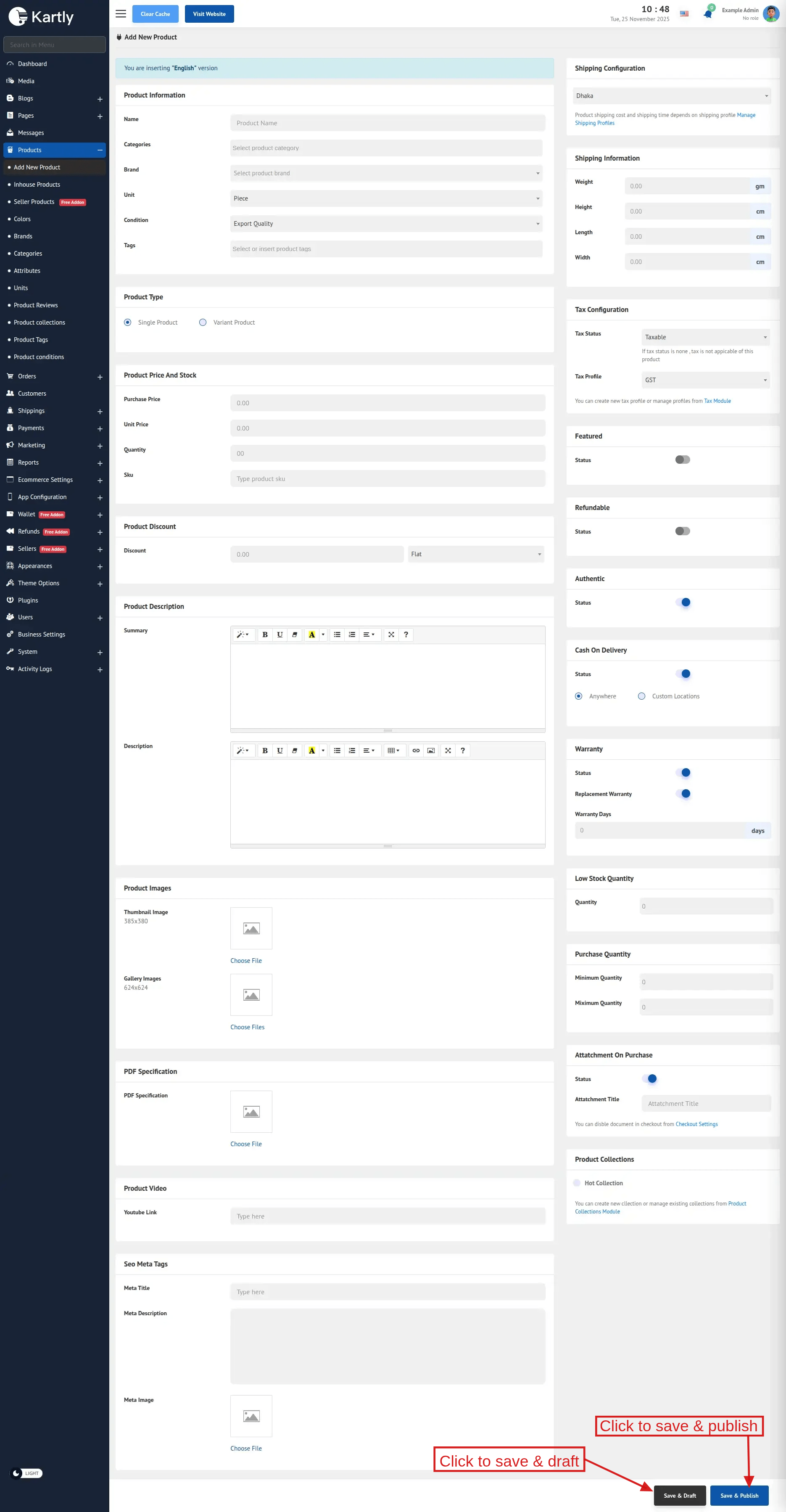 In this post, we will learn how to Create New Product. Go to Products > Add New Product.