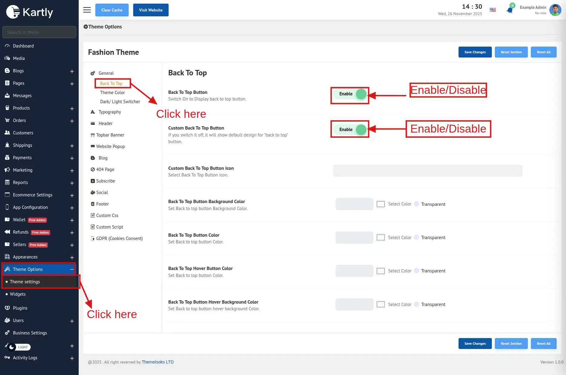 Custom Back To Top Button: If you switch it off, it will show the default design for the "back to top" button.