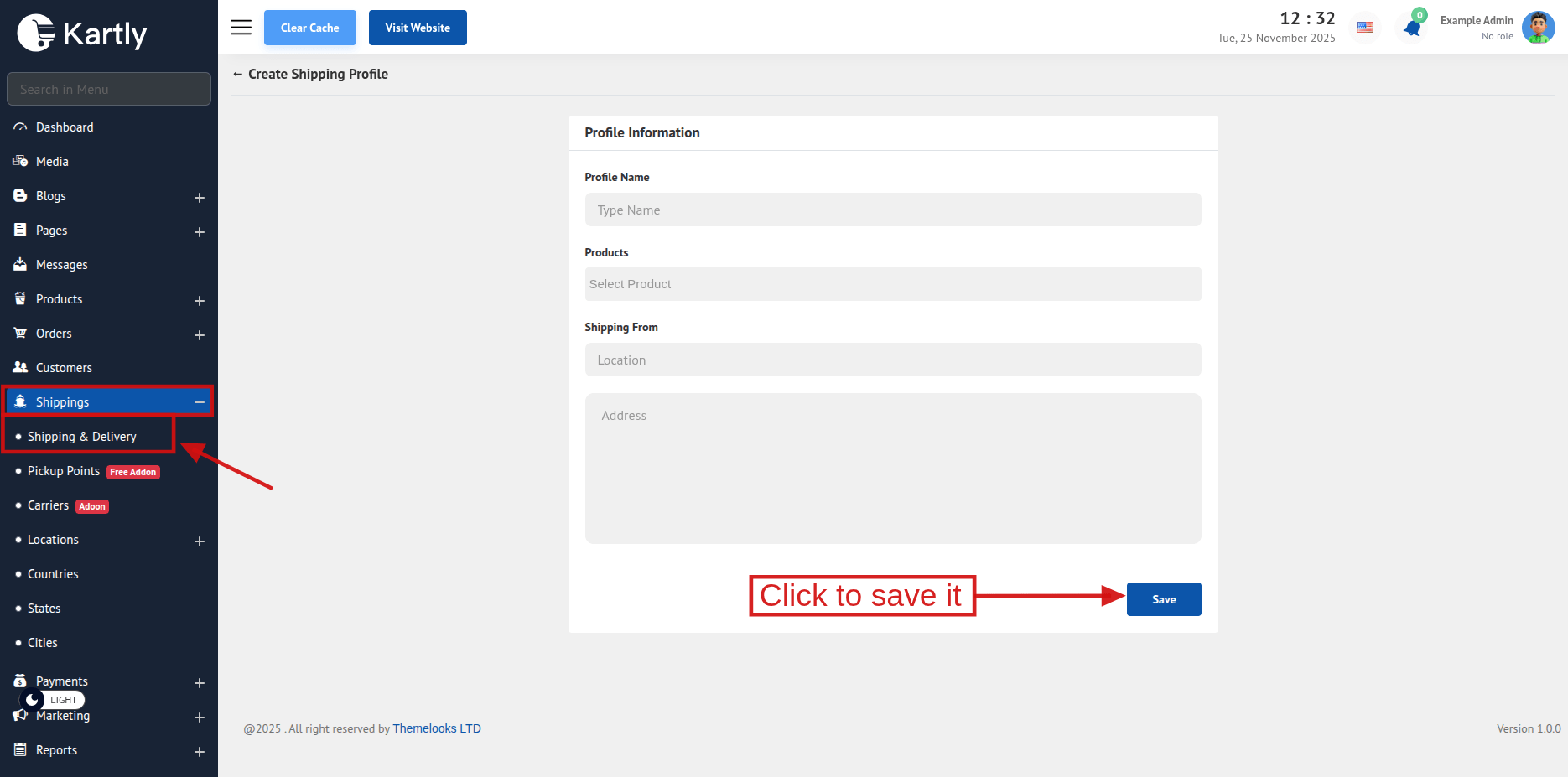To Create New Shipping Profile click on Create New Profile from the top. It will redirect you to create a shipping page.