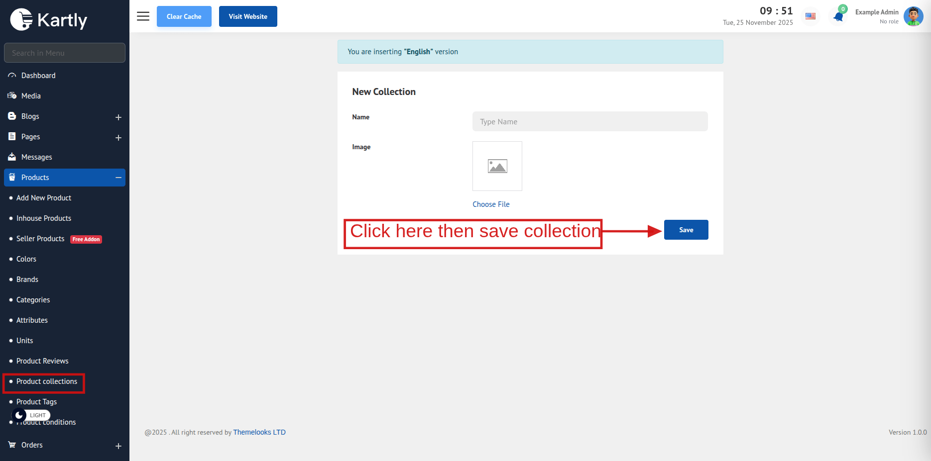 If you want to create a new collection click on Add New Collection on the top. It will redirect you to add new collection page.