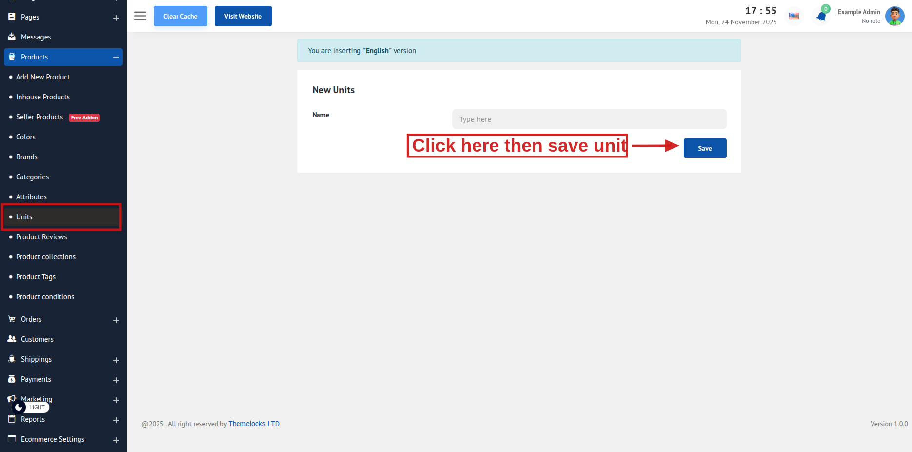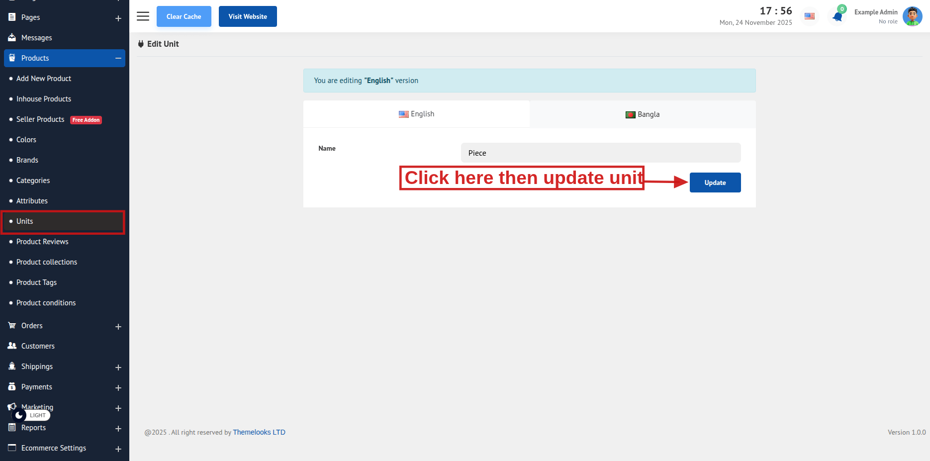 If you want to update a unit click Edit from unit list page and it will redirect you to edit page. You can also delete a units by clicking Delete Link.
