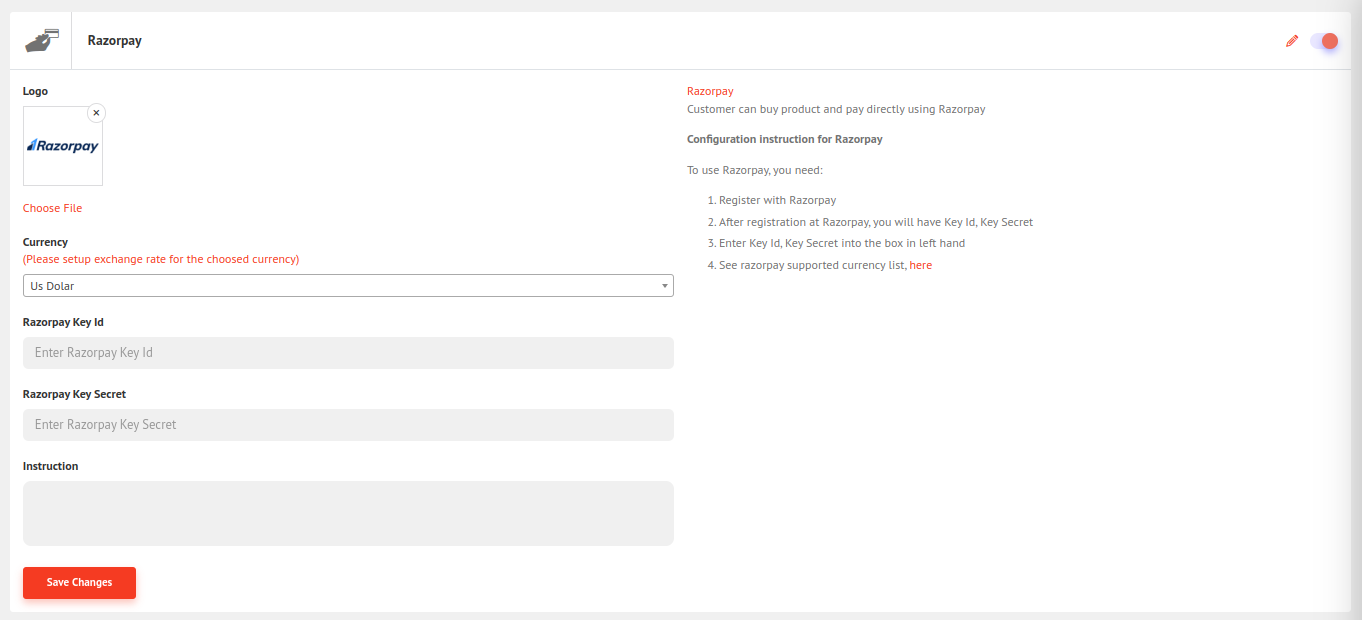 Configure Razorpay