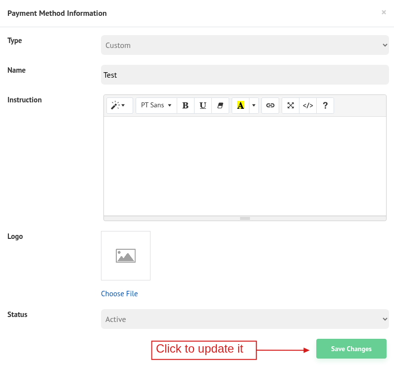 To create a new method click Add New Payment Method. A model will open. Here you can select the type for the method. Bank, Cheque, and Custom three types of methods are available. If you select the bank, some field will appear, and fill out that information.