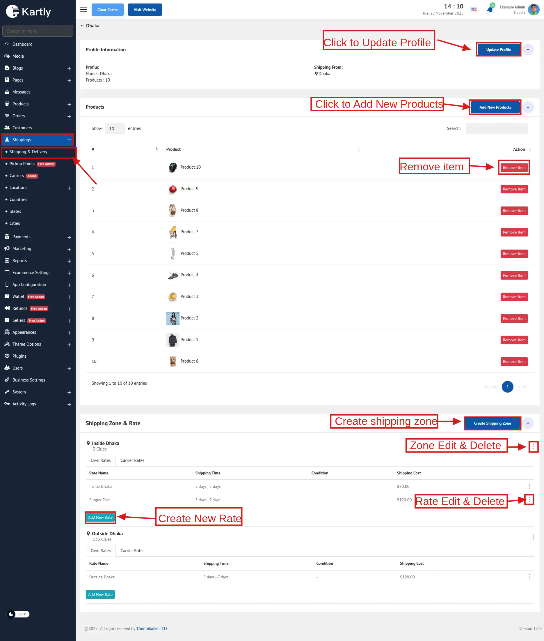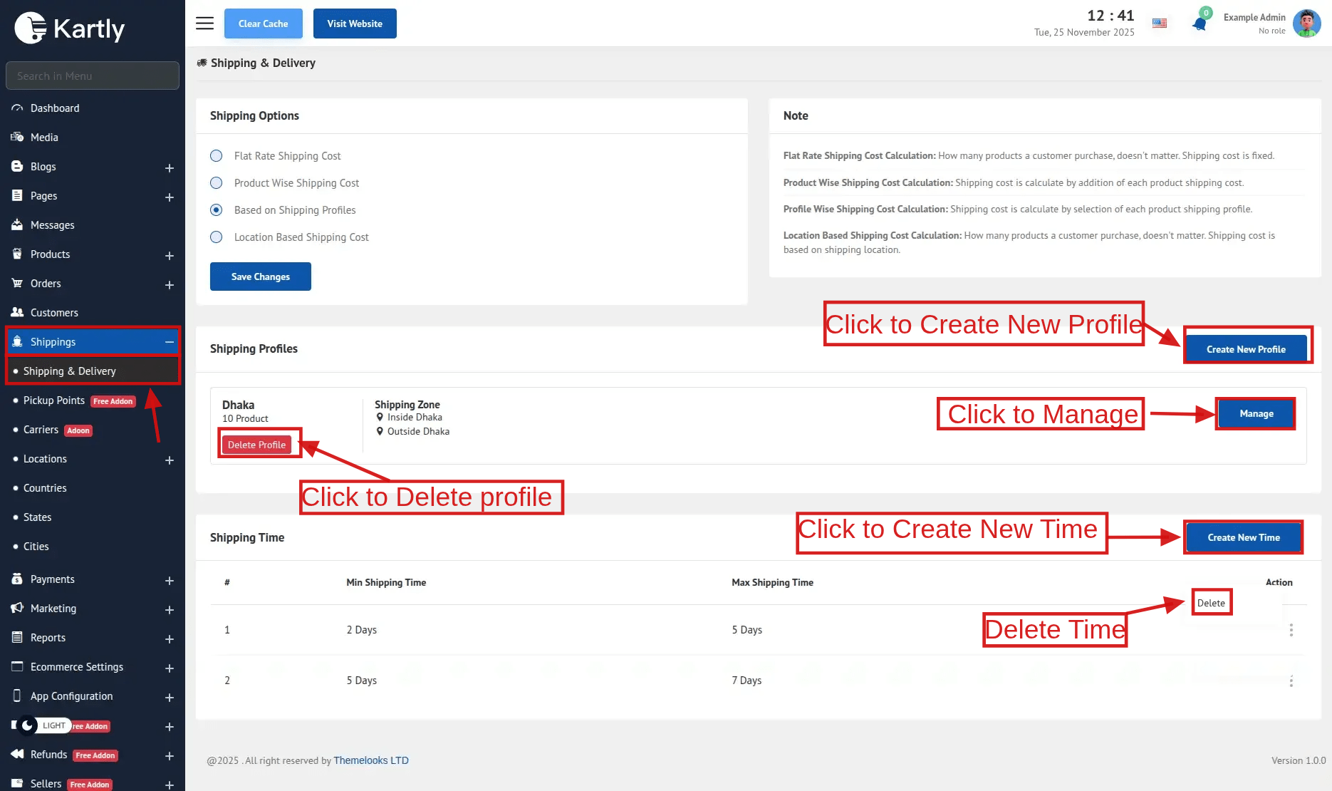 You can manage your Shipping Profile by clicking the Manage button. It will redirect you shipping profile management page.