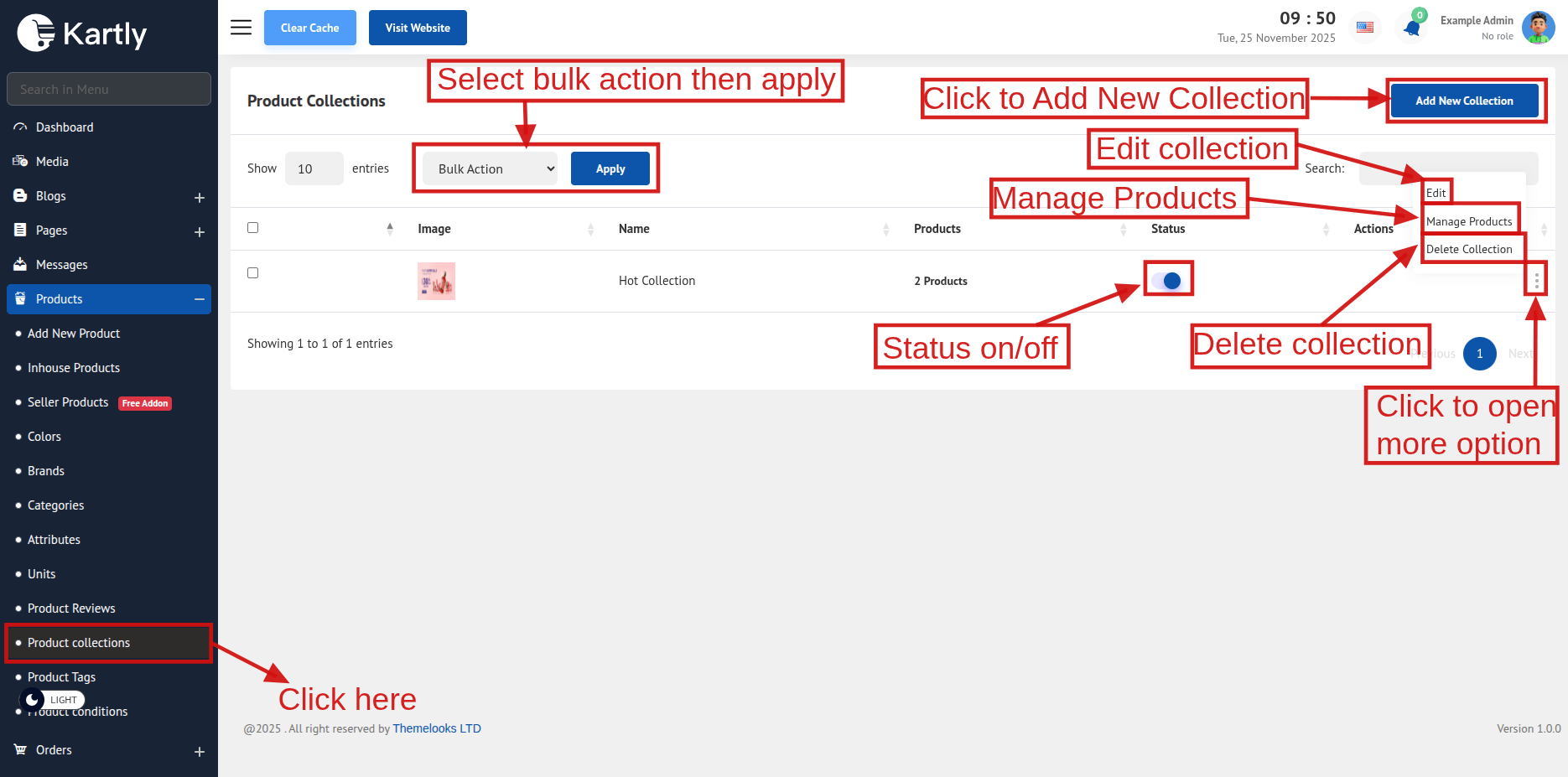 If you want to create a new collection click on Add New Collection on the top. It will redirect you to add new collection page.